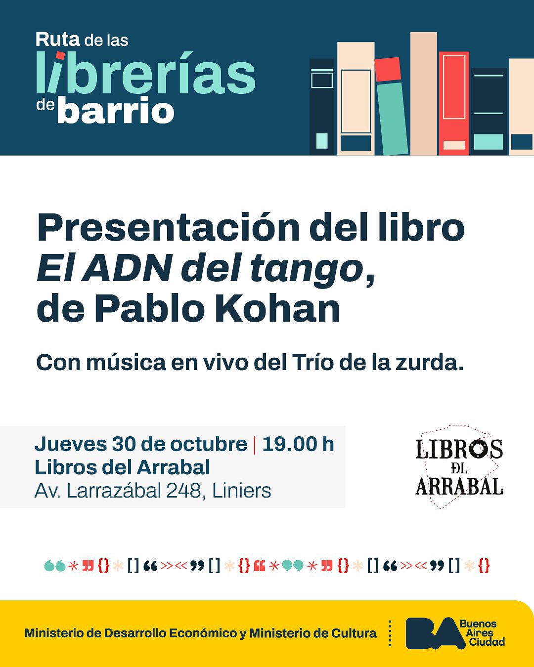 29.10.2025 El ADN del tango en Libros del Arrabal Un encuentro para conversar sobre los estilos compositivos del tango entre 1920 y 1935. El colofón musical estará a cargo del Trío de la zurda.